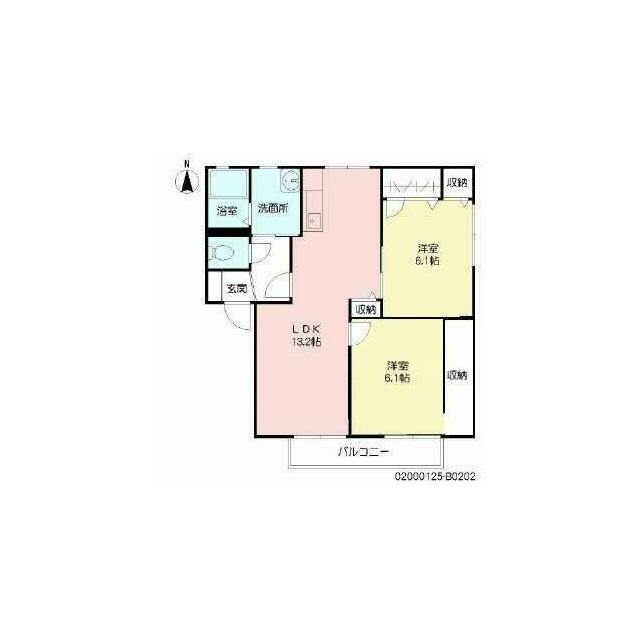 2LDK(LDK13.2帖 和室6.1帖 洋室6.1帖) |