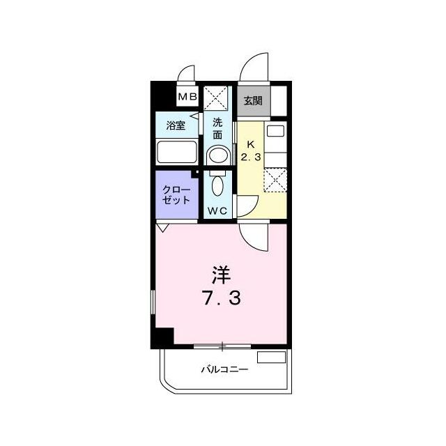 | 間取り | 1K(洋7.3・K2.3) | 主要採光面 | - |